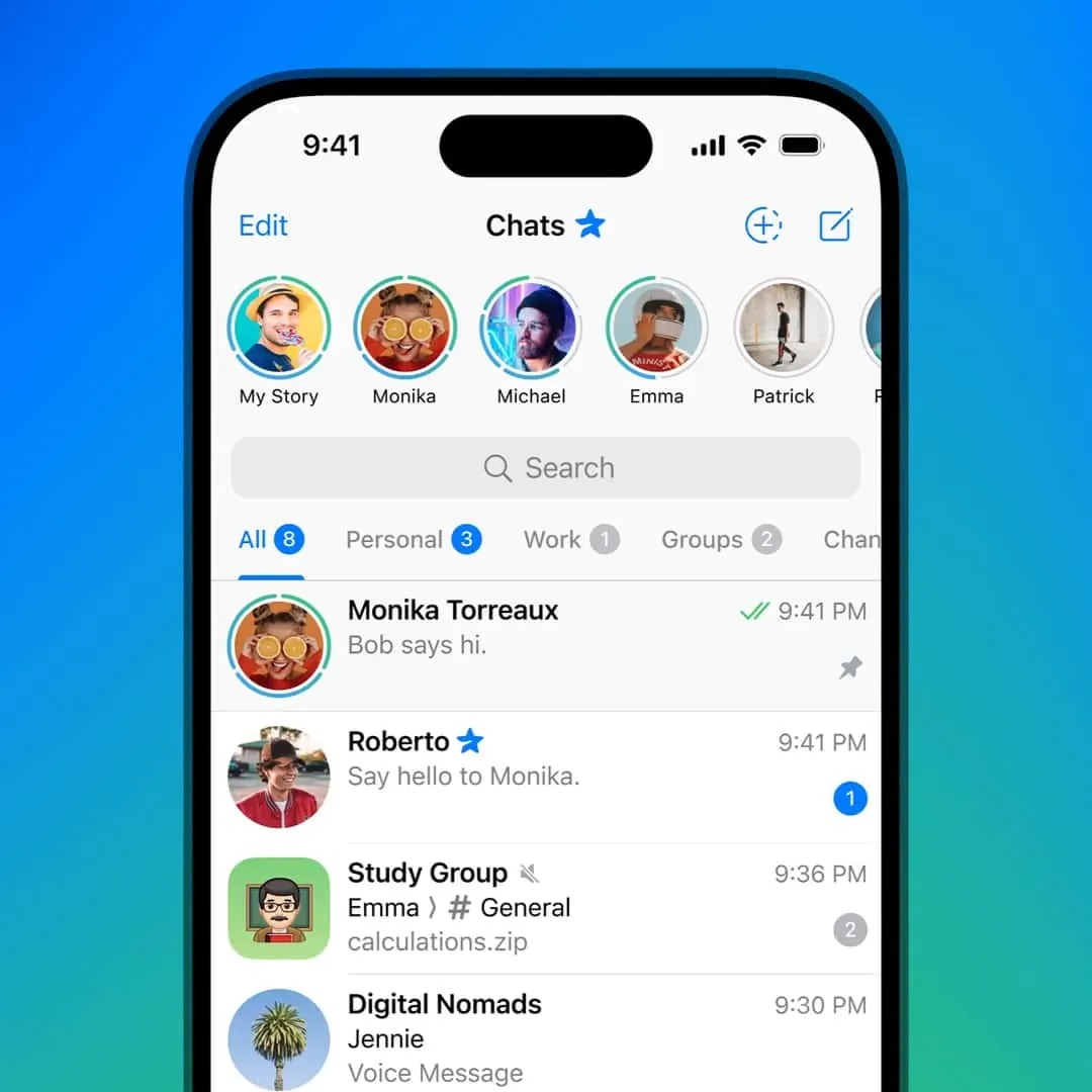 今天的更新引入了Telegram 上公开帖子的全球搜索功能,将故事分类到相册中,将礼物整理到收藏夹中,通过全新的时尚小程序管理机器人——以及更多功能。